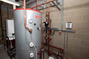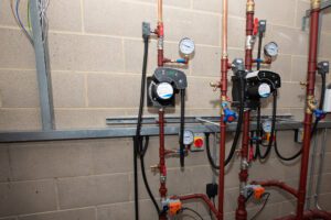 In order to power the new plant room, AMROC fitted a new, 2-inch valve to the mains gas line to power the plant room and the new heating and hot water systems.